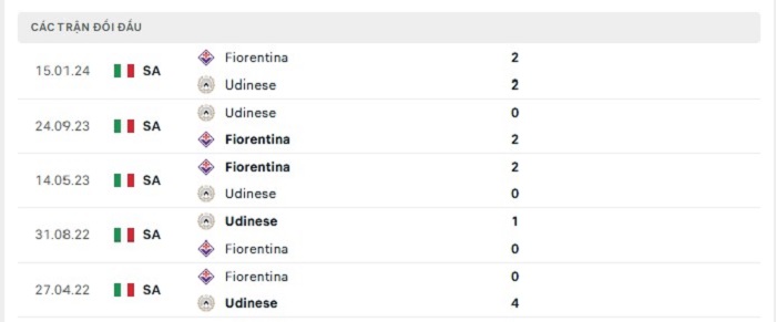 Bảng bóng đá trận đấu Fiorentina vs Udinese