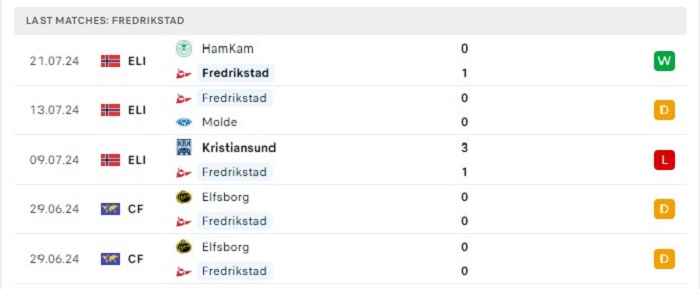 Phong độ gần đây Fredrikstad vs Rosenborg