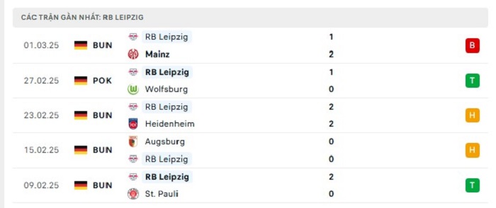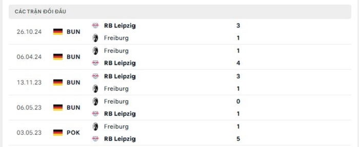 Bảng bóng đá trận đấu Freiburg vs RB Leipzig
