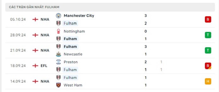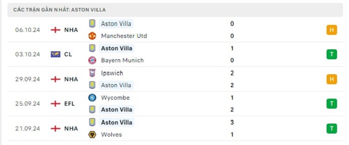 Bảng  bóng đá trận đấu Fulham vs Aston Villa