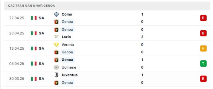 - Phong độ Genoa