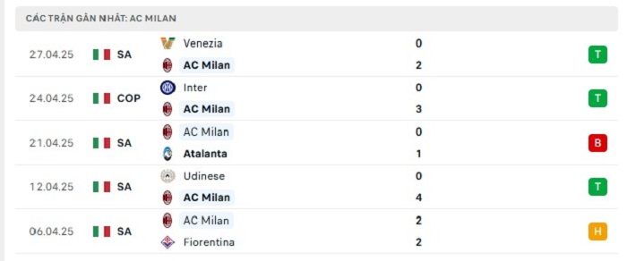 - Phong độ AC Milan