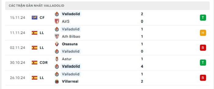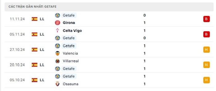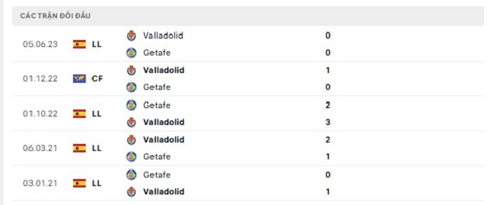 Bảng bóng đá trận đấu Getafe vs Real Valladolid