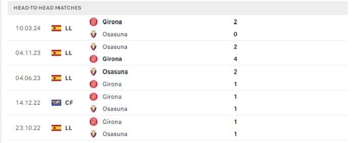 Lịch sử đối đầu của Girona vs Osasuna