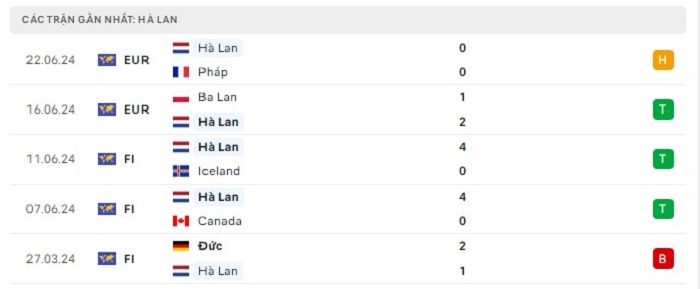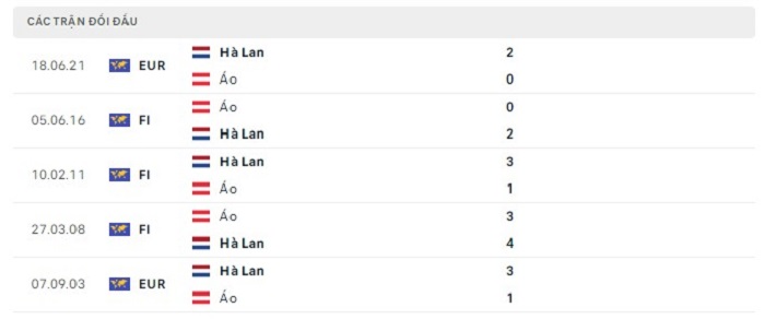 Có thể nhận thấy được đội tuyển Áo chính là con mồi yêu thích của Hà Lan trong quá khứ, cả 6 lần gặp nhau gần đây của hai đội Hà Lan đều là đội có được thắng lợi theo kèo châu Âu, điều này đã phần nào cho thấy sự chênh lệch khá rõ của cả hai đội từ trước đến nay. Chính vì vậy mà có thể đặt niềm tin vào Hà Lan ở trận đấu này khi mà họ đang hướng tới mục tiêu cạnh tranh ngôi đầu bảng.