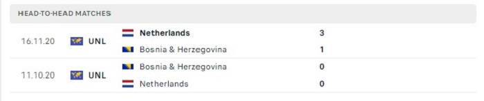Sân chơi UEFA Nations League mùa trước Hà Lan cũng đã thi đấu rất thành công, thực tế là vậy khi mà “Cơn lốc” màu da cam có được thành tích bất bại ở vòng bảng với 5 trận thắng và 1 trận hoà. Hàng công của Hà Lan cũng đang đã có môt mùa giải thành công với mình khi họ sở hữu được 14 bàn thắng sau 6 vòng đấu của mình. Bên kia sân Bosnia & Herzegovina cũng đã có được những thành công của mình để có được tấm vé thăng hàng mùa trước, những thành công của Bosnia & Herzegovina cũng được ghi nhận qua thành tích ghi bàn của họ, do vậy mà cửa tài sẽ là sự lựa chọn đáng được tin cậy của trận đấu.