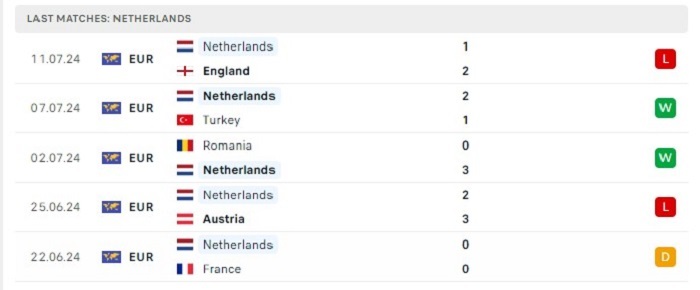 Phong độ gần đây Hà Lan vs Bosnia & Herzegovina