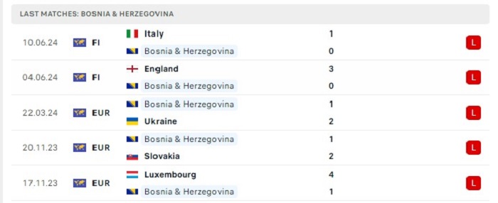 - Phong độ Bosnia & Herzegovina