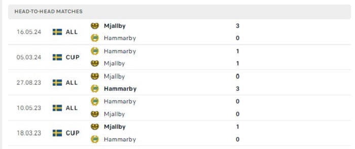 Lịch sử đối đầu của Hammarby vs Mjallby