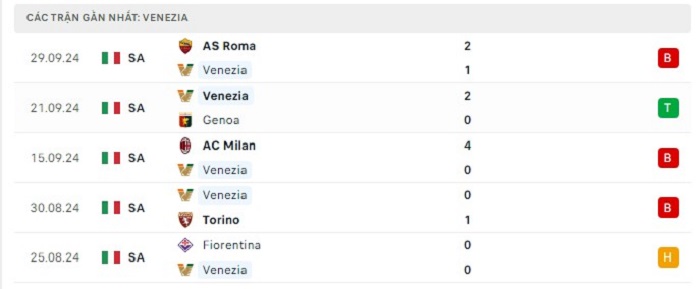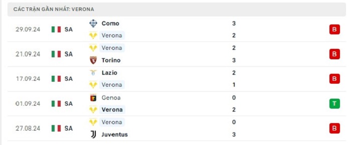 Bảng  bóng đá trận đấu Hellas Verona vs Venezia