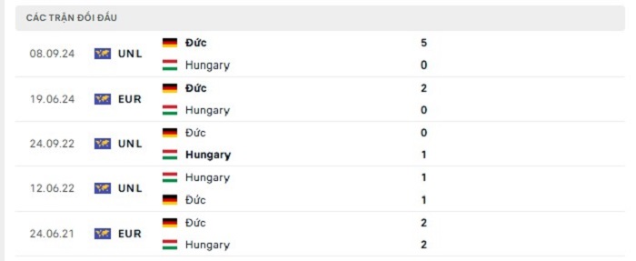 Bảng bóng đá trận đấu Hungary vs Đức