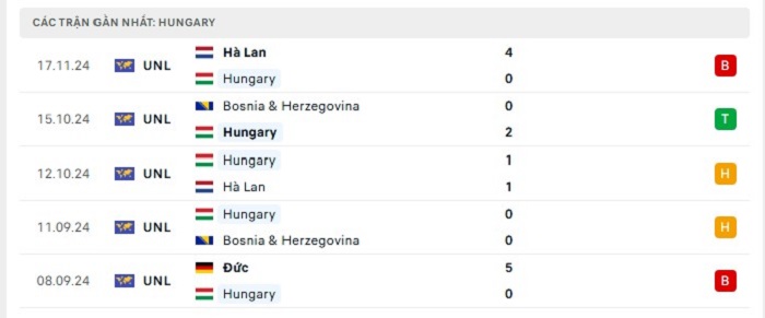 Phong độ gần đây Hungary vs Đức