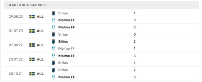 Malmo FF cho thấy được những thành công của mình trước IK Sirius trong quá khứ, cụ thể chính là 10 lần gặp nhau gần đây họ có tới 8 trận thắng kèo châu Âu trong khi chỉ hoà 1 và thua 1. Sức mạnh và sự ổn định trong lối chơi của Malmo FF vẫn đang được thể hiện ở mùa giải với tổng cộng 11 lần thắng kèo châu Âu cả trận. Vì vậy mà khả năng đánh bại đội chủ nhà IK Sirius với đội khách là điều đang nằm trong khả năng của họ.