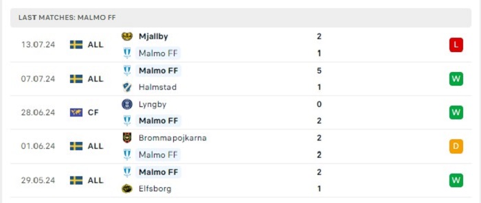 - Phong độ Malmo FF