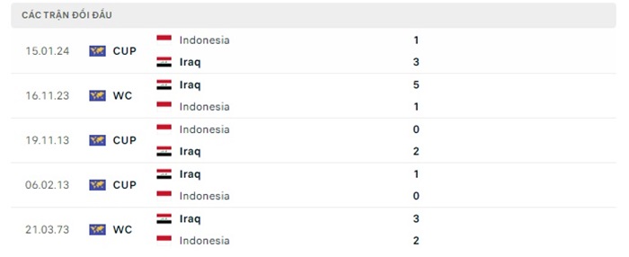 Có thể nhận thấy được Iraq là đối thủ thực sự rất khó nhằn với Indonesia trong quá khứ. Cả 4 lần gặp nhau gần đây của hai đội Indonesia toàn phải nhận thất bại theo kèo châu Âu cả trận. Trong đó họ nhận 2 thất bại liên tiếp gần đây khá nặng nề trước Iraq đã cho thấy thực lực của hai đội thực sự rất chênh lệch với nhau. Vì vậy mà cánh cửa thắng kèo châu Âu của Iraq ở trận đấu sắp tới đây vẫn đang được giới chuyên môn đánh giá cao hơn nhiều.