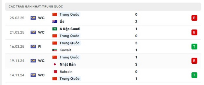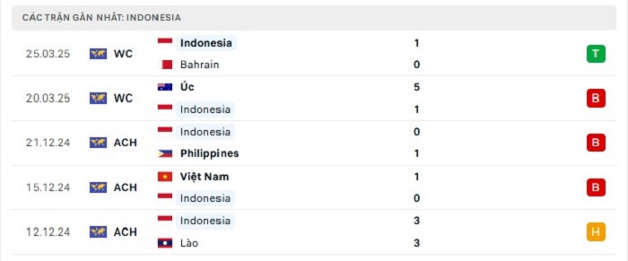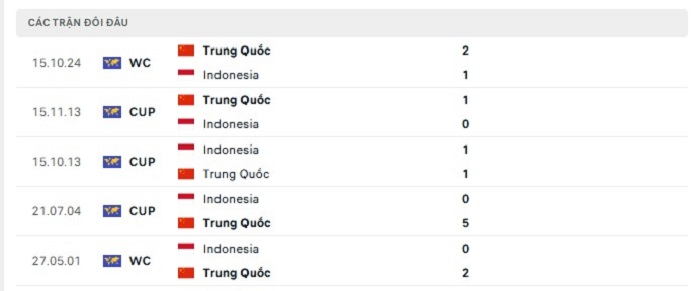 Phong độ gần đây Indonesia vs Trung Quốc