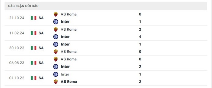 Lịch sử đối đầu của Inter Milan vs AS Roma