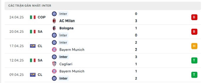 • Phong độ Inter Milan