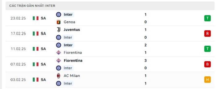 Phong độ gần đây Inter Milan vs Lazio