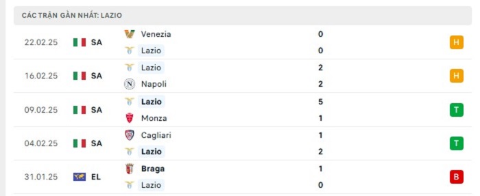 - Phong độ Lazio