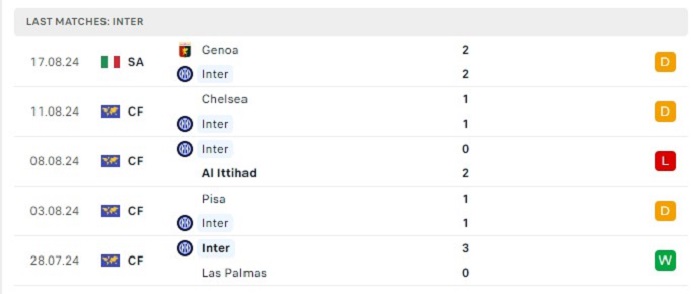 - Phong độ Inter Milan
