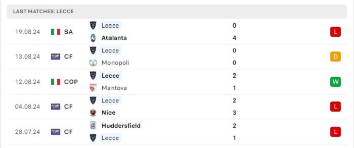 - Phong độ Lecce