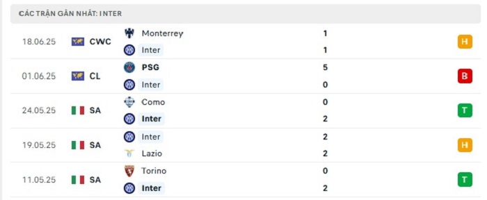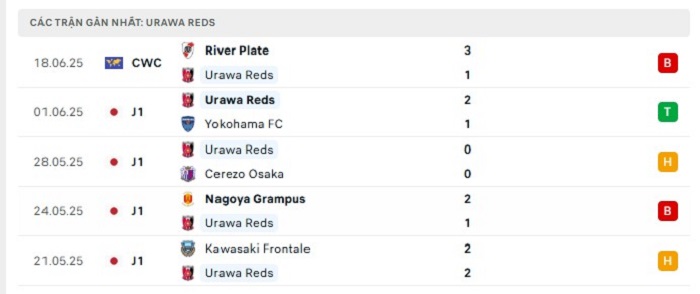 Phong độ gần đây Inter Milan vs Urawa Red Diamonds