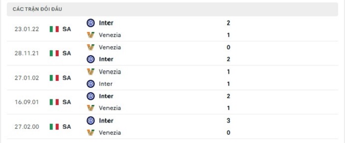 Thống kê trong những trận gặp nhau giữa Inter Milan và Venezia tỷ lệ ghi bàn trong các trận đấu cũng không quá cao, điều này có thể nhận thấy được khi 2 trận gặp nhau gần đây ở mùa giải mà Venezia góp mặt tại Serie A cũng chỉ có được từ 3 bàn thắng ghi được trở xuống. Hàng công của Inter Milan trên sân nhà thì đấu ổn định nhưng họ cũng có một hàng thủ được đánh giá cao về sự chắc chắn của mình, chính vì vậy mà khó có thể kỳ vọng tới một trận đấu bùng nổ về mặt tỷ số của cả hai đội.