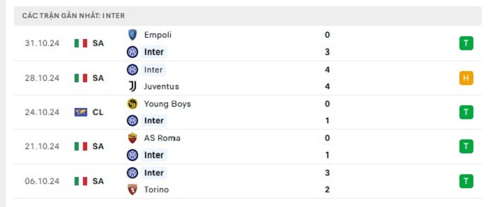 Phong độ gần đây Inter Milan vs Venezia