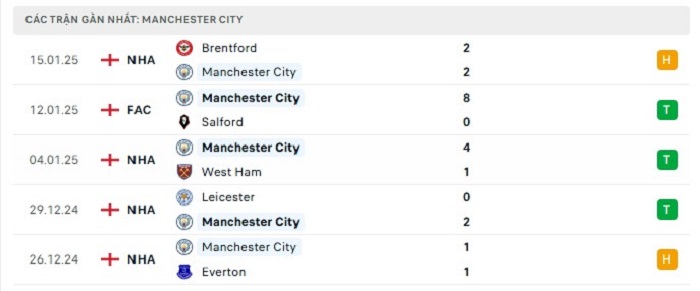 • Phong độ Manchester City