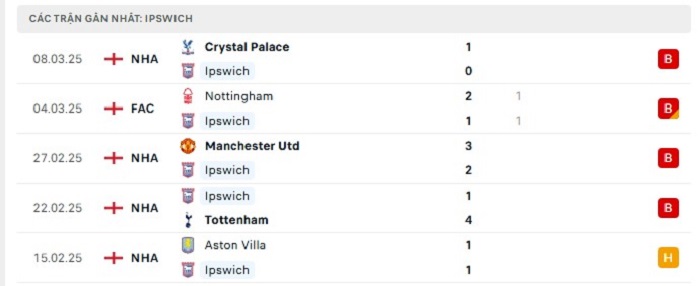 Phong độ gần đây Ipswich vs Nottingham