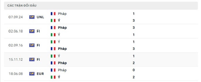 Bảng  bóng đá trận đấu Italia vs Pháp