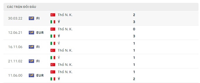 Thống kê có thể nhận thấy được 2 trong 3 lần gặp nhau của hai đội đã xuất hiện từ 3 bàn thắng ghi được trở lên, Thổ Nhĩ Kỳ có hàng thủ thi đấu không mấy hiệu quả nhưng bù lại hàng công của họ cũng khá ân tượng ở thời điểm này. Bên phía tuyển Italia họ cũng không thể hiện được sự chắc chắn của mình ở những trận đấu gần đây, vì vậy khả năng tỷ số trận đấu có thể xuất hiện nhiều trong trận cũng là điều có thể hiểu được.