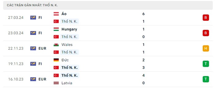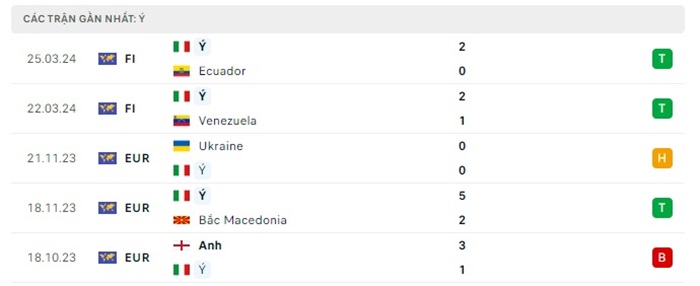 Phong độ gần đây Italia vs Thổ Nhĩ Kỳ