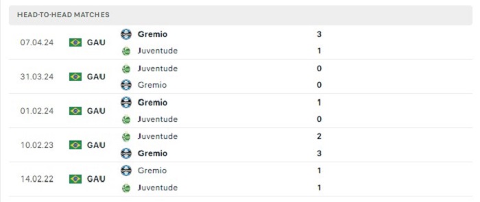 Ưu thế lịch sử với Gremio ở vòng đấu này cũng có thể nhận thấy được bởi thành tích quá khứ vượt trội hơn. Gremio chỉ để thua 2 trận đấu trước Juventude theo kèo châu Âu trong khi họ có tới 6 lần đã có được niềm vui chiến thắng. Phong độ mặc dù không được tốt so với đội chủ nhà nhưng với Gremio họ sẽ có thêm được động lực tinh thần để có thể hy vọng cải thiện vị trí của mình trên bảng xếp hạng.