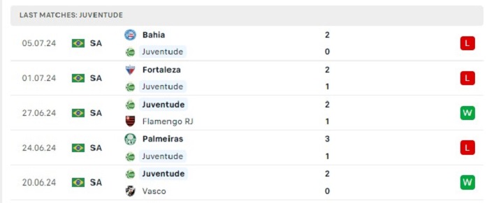 Phong độ gần đây Juventude vs Gremio