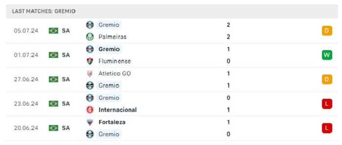 - Phong độ Gremio