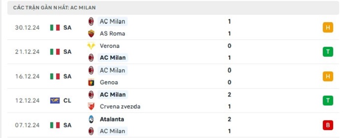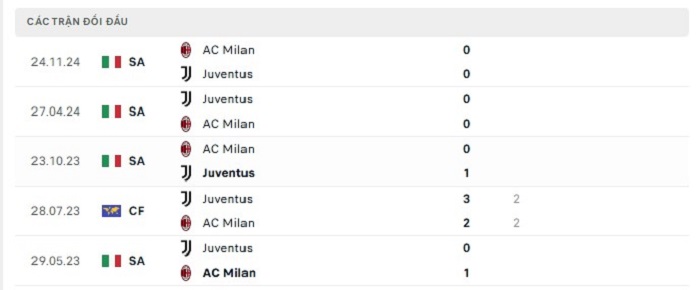 Bảng  bóng đá trận đấu Juventus vs AC Milan