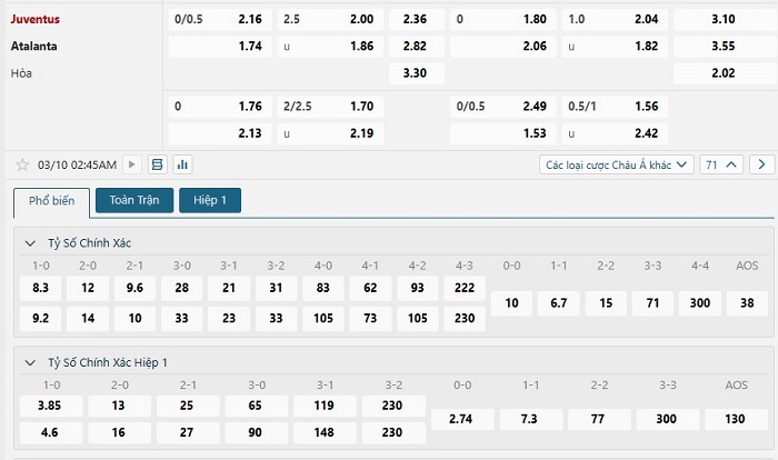 Soi kèo châu Á, kèo chấp Juventus vs Atalanta