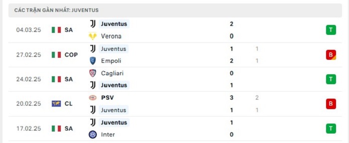 Phong độ gần đây Juventus vs Atalanta