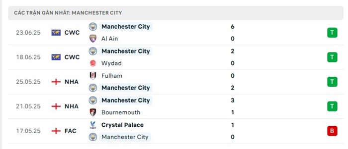 • Phong độ Manchester City