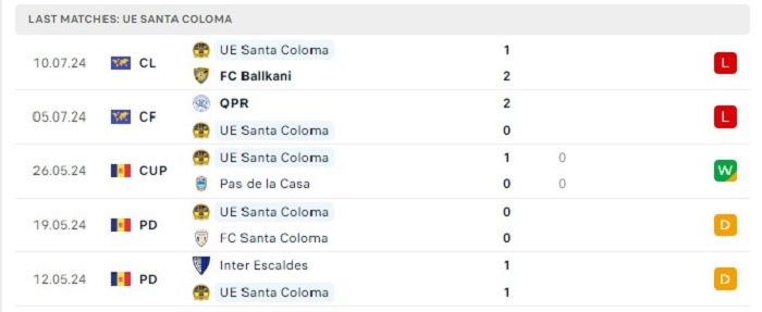 Phong độ gần đây KF Ballkani vs Santa Coloma