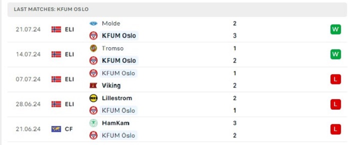 Phong độ gần đây KFUM Oslo vs Bodo Glimt