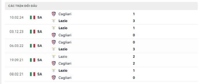 Quá khứ cũng đang hoàn toàn đứng về phía Lazio trong những lần gặp Cagliari trước đây, điều này cũng đã nhận thấy được bởi 10 trận gặp nhau gần nhất Lazio thắng kèo châu Âu tới 9 trận đấu và chỉ 1 lần đề hoà. Sức mạnh của Lazio so với Cagliari cũng có thể thấy được qua thứ hàng của hai đội tại sân chơi Serie A mùa giải hiện tại, vì vậy mà việc đội chủ nhà có thể tiếp tục phát huy sức mạnh với một chiến thắng tiếp theo cho mình không phải là nhiệm vụ quá khó khăn.