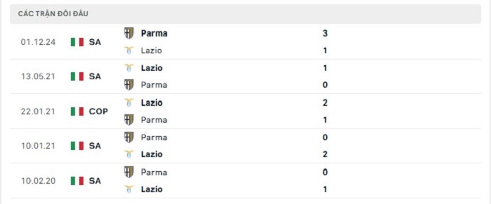 Thống kê có thể nhận thấy được giữa Lazio và Parma trong quá khứ cũng từng có không ít trận đấu xuất hiện được tỷ số cao ghi được, điều này cho thấy được lối chơi cả hai đội trước đây cũng có những mặt phóng thoáng với nhau. Thực tế thì mùa giải đang diễn ra hiện tại các trận đấu có sự góp mặt của Lazio tỷ lệ ghi bàn cũng tương đối cao khi mà họ có hàng công tốt nhưng thủ không mấy hiệu quả, đây cũng chính là lý do quan trọng để có thể hướng tới một trận đấu có tỷ số cao ghi được cho cả hai đội.