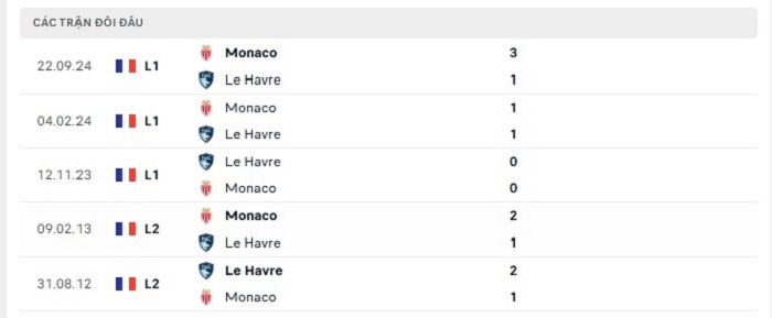 - Dự đoán tỉ số trận đấuLe Havre vs AS Monaco