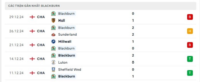 - Phong độ Blackburn Rovers