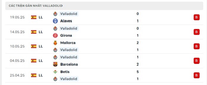 • Phong độ Real Valladolid