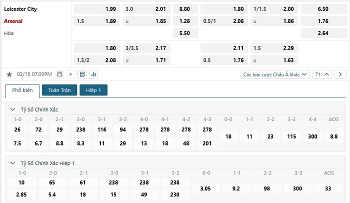 Soi kèo châu Á, kèo chấp Leicester City vs Arsenal