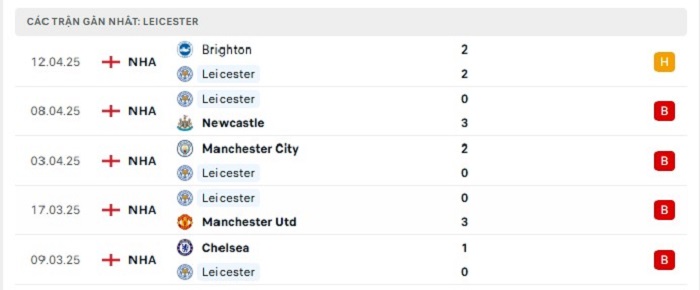 • Phong độ Leicester City